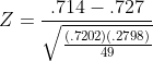 For example: Is Prozac more effective at treating Anorexia than a placebo? It compares these two proportions by finding out how many women were helped by each of the two drugs and giving us a statistic to show which drug worked in comparison to each other. Using the two-proportional z-test we can find the difference and see if the Prozac is more helpful than a placebo. Our sample has 93 total women, 49 who received prozac with 35 who were deemed healthy, and 44 who received the placebo with 32 who were deemed healthy.